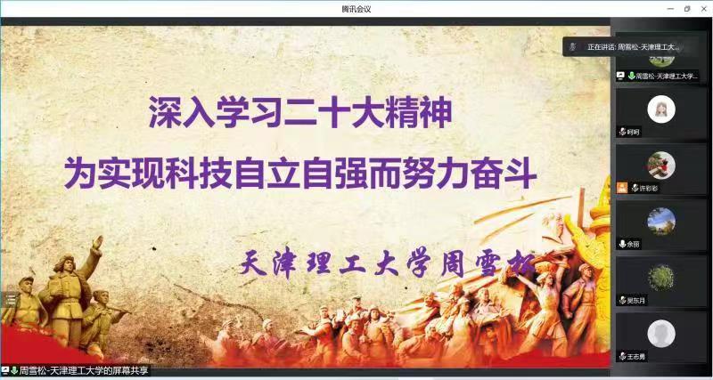 周雪松教授以《学习宣传贯彻党的二十大精神,为实现科技自立自强而努力奋斗》为题,围绕祖国科技事业的发展和科技实力不断增强的主线,介绍了新中国成立以来,我国科技事业从“向科学进军”到“科学技术是第一生产力”,从落实“科教兴国”到建设“创新型国家”,从实施“创新驱动”到布局“世界科技强国”的伟大历程。周老师提出要以党的二十大精神为指导,从公司层面和科研层面落实两个“一体化发展”,加快公司高质量发展。参会教师表示受益匪浅,周老师的报告为进一步深入学习领会党的二十大精神,全面深入理解内涵,精准把握外延,提供了有益帮助和指导。