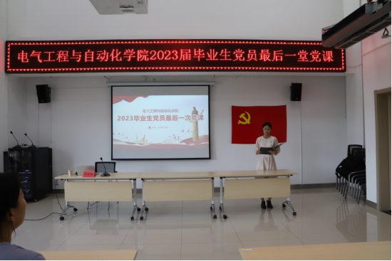 宣誓结束后,马红健老师为同学们开展题为“请记住,你是一名共产党员”的毕业前最后一节党课。从政治选择将共产党员作为自己的“第一身份”开始,教育毕业生党员应牢记入党誓词,坚守入党初心,始终保持共产党员的先进性,脚踏实地,奋勇争先。在步入社会之后,应时刻以党员的标准严格要求自己,永葆廉洁之心,清清白白做人、干干净净做事。最后,马老师强调了在毕业之际,中共党员的政治身份也将跟随同学们奔赴下一场山海,及时转接党员组织关系,是每个党员应履行的责任和义务。