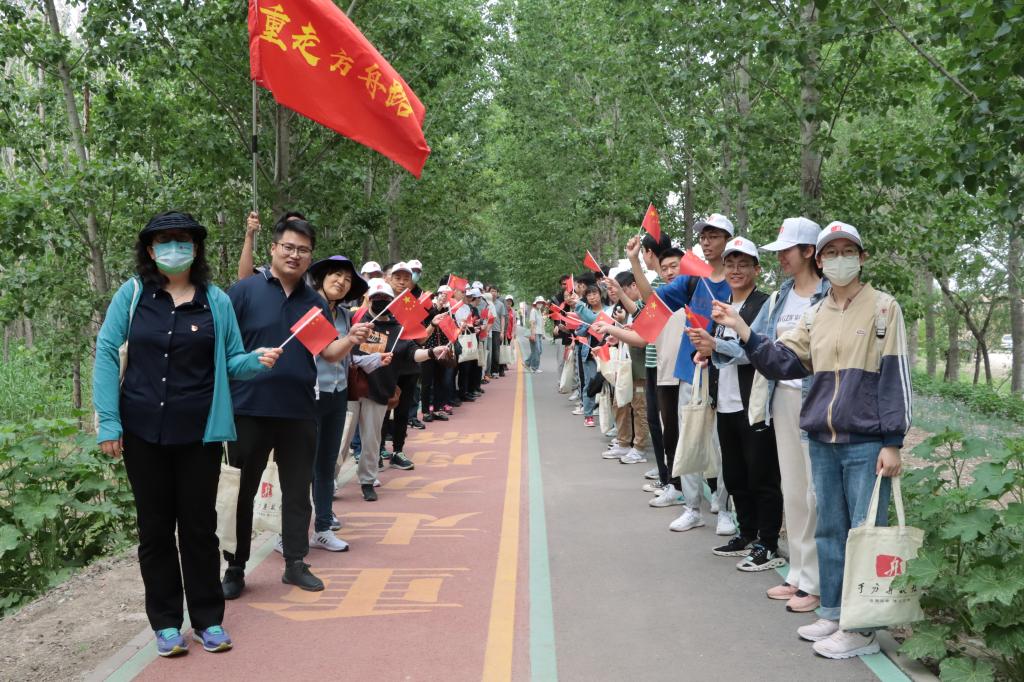 师生党员们首先来到于方舟故居所在地—天津市宁河区俵口镇,通过红色革命标语墙、新生社场景体验、方舟故居、于方舟生平展等,了解方舟事迹,学习方舟精神,传承红色文化。在宣誓广场,在党委书记余丽同志带领下,所有党员面向党旗重温入党誓词,铿锵有力的誓言,不仅是对英雄的致敬,更是对共产党人初心使命的庄严承诺。大家纷纷表示,通过重走红色主题之路,进一步深刻体验革命先辈“以己为舟济苍生”的革命情怀和使命担当,要赓续红色血脉,秉承“革心”“革新”精神,将学习成果转化为推动工作的强大力量。