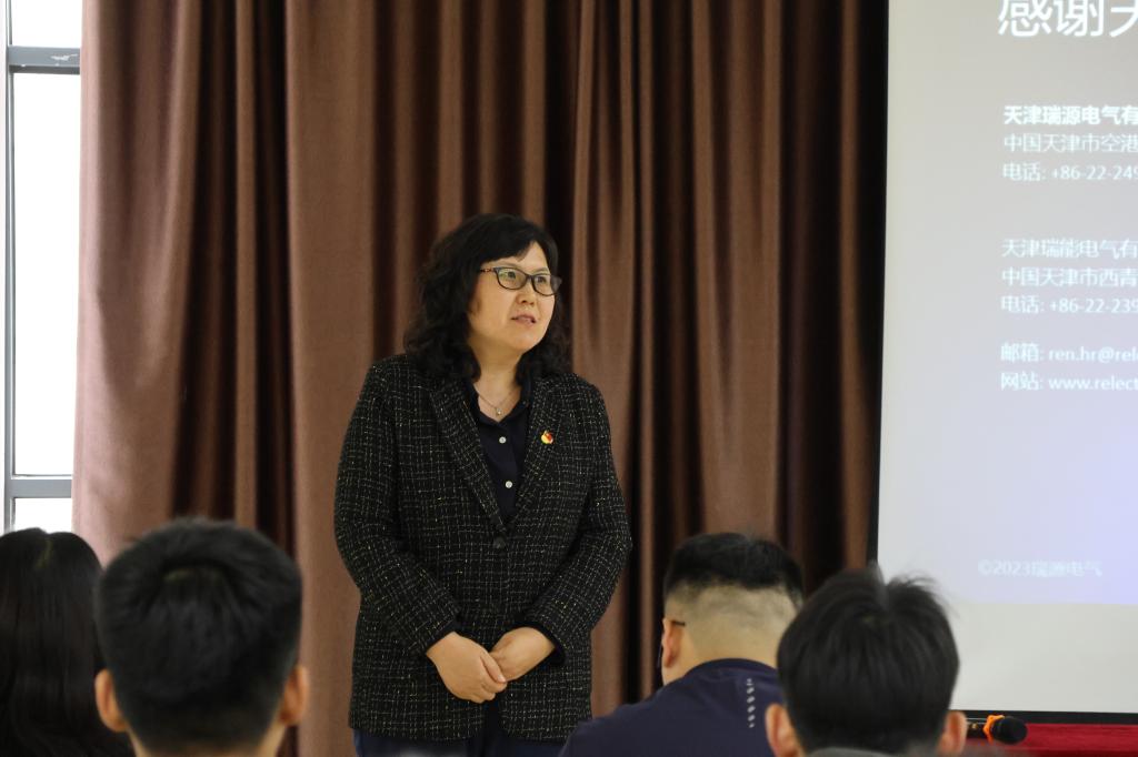 天津瑞源电气有限公司企划总监王海平对公司师生一行的到来表示热烈欢迎,简要介绍了企业发展历程、业务市场、技术实力、招聘需求等情况,并表示期待同英国上市官网365加强战略合作,在新能源控制领域高质量发展做出更大贡献。