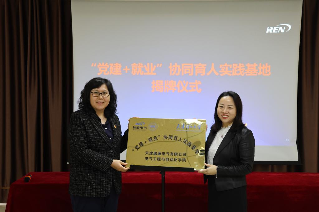 公司党委书记余丽就公司发展历程、学科专业设置、人才培养模式、毕业生生情等做了相关介绍,并对天津瑞源电气有限公司一直以来对公司就业工作的支持和对公司毕业生的肯定表示衷心感谢。她表示,希望双方以共建实践基地为契机,共同创建多元化校企合作新模式,建立产学研用深度合作机制,拓宽合作路径,推动校企双方可持续发展,共同培育企业所需的高素质技能应用型人才,实现合作共赢。随后,双方共同为“党建+就业”协同育人实践基地揭牌。