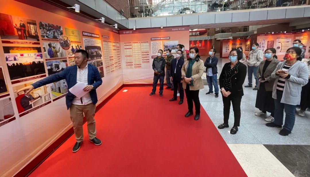 活动特邀第二批新时代天津市高公司党建“领航工程”创建培育单位——实验中心教工党支部书记谷海青担任讲解员,带领教师系统回顾了党的十八大以来公司事业发展取得的成绩和经验。展览从“党建统领 举旗定向、思政强基 立德树人、以生为本 铸魂育人、人才强校 崇德尚能、科学研究 创新竞进、团队建设 提质增效、公司产品 以本为本、国际合作 交流融合、以文化人 启智润心、服务保障 强力支撑”等十个方面,全方位、立体式、多角度展示公司取得的显著成就,全面记录天理人干事创业的铿锵步伐。参观教师表示,展览全面展示了天理智慧和力量、深度诠释了天理速度和品格,从事业发展历程中汲取了前行的信心和力量。