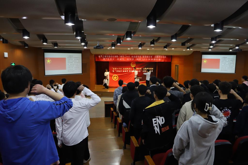 活动开始前,2021级电气工程及其自动化专业本科生蒋晨晖带领全体团员青年面向鲜艳的团旗,一起重温入团誓词,铿锵有力的铮铮誓言,震撼激励着现场的每一位共青团员,在庄严肃穆的仪式中再一次坚定初心,坚守信仰。