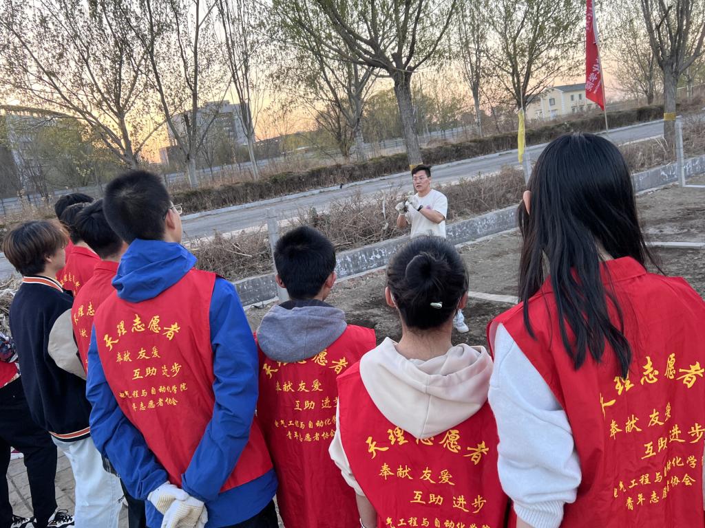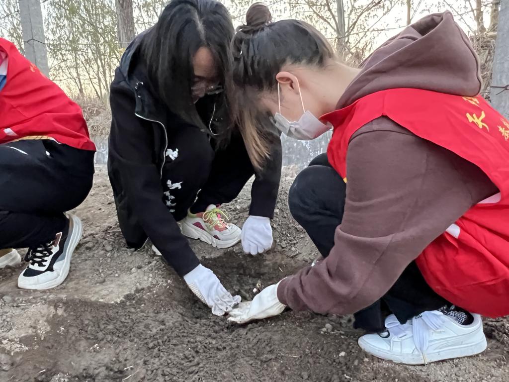 在明理农场,陈嘉琦老师为参与活动的师生讲解了月季花的种植技巧和生长需求,详细介绍了月季花种植的注意事项,并为大家示范了种植的流程,同学们仔细观摩,认真学习。随后,按照分组,辅导员带领员工纷纷投入月季花栽种工作,在预先挖好的土坑中,大家放入花苗、填土压实、提水灌溉,道道工序细致认真、有条不紊,每个人都忙碌得不亦乐乎,一派繁忙有序、热火朝天的景象。