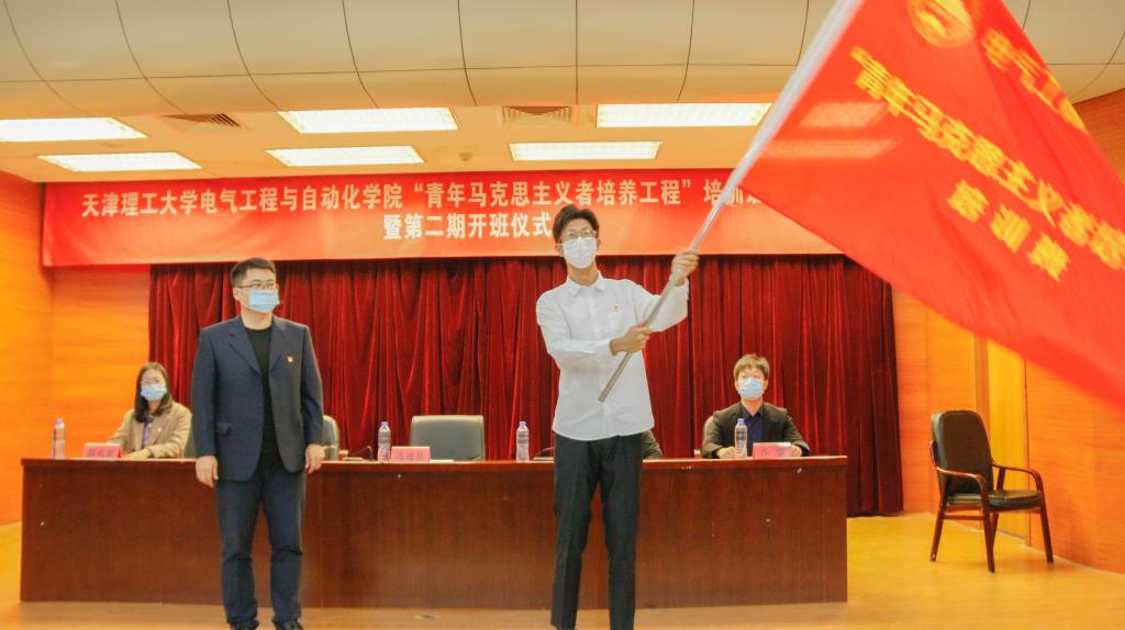 党委副书记冯增振老师为第二期青马学员代表授旗并讲话,冯老师对顺利结业和新入选的青马学员表示祝贺,同时对青马学员们提出三点希望:一要亮明“青马”身份,做马克思主义的坚定信仰者、践行者、传播者和布道者;二要善用“青马”身份,在公司的日常管理中发挥桥梁纽带作用;三要珍惜“青马”身份,将思想内化于爱国爱党爱校的行动。不忘初心、牢记使命,争做“有理想、有追求、有担当、有作为、有品质、有修养”的新时代青年。
