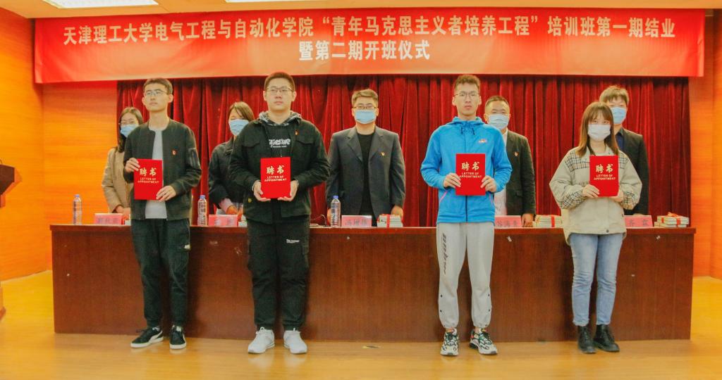 仪式上,班导师为第一期青马班学员代表颁发结业证书、优秀学员证书,为第二期青马班朋辈班导师颁发聘书。“进德”班班导师谷海青老师表示将和所有班导师一起,带领同学们学好马克思主义,理论联系实际,做中国特色社会主义事业的合格建设者和可靠接班人;第一期优秀学员代表2020级电气专业赵靖涵通过回忆过去一年在青马的学习锻炼经历,总结自己获得的成长和蜕变,并表示今后将把在青马的学思践悟转化为学习生活中的实际行动,影响和带动身边更多同学。