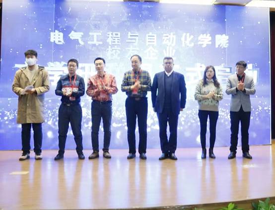 公司副经理赵岩与天津艾威克自动化技术有限公司、布谷鸟同创科技天津有限公司、天津巨益机电设备有限公司、北京江森自控有限公司、天津驰威暖控科技有限责任公司、同丰建业(天津)农牧科技有限公司六家员工企业负责人共同启动校企合作产学研联盟,揭开校企协同育人的新篇章。