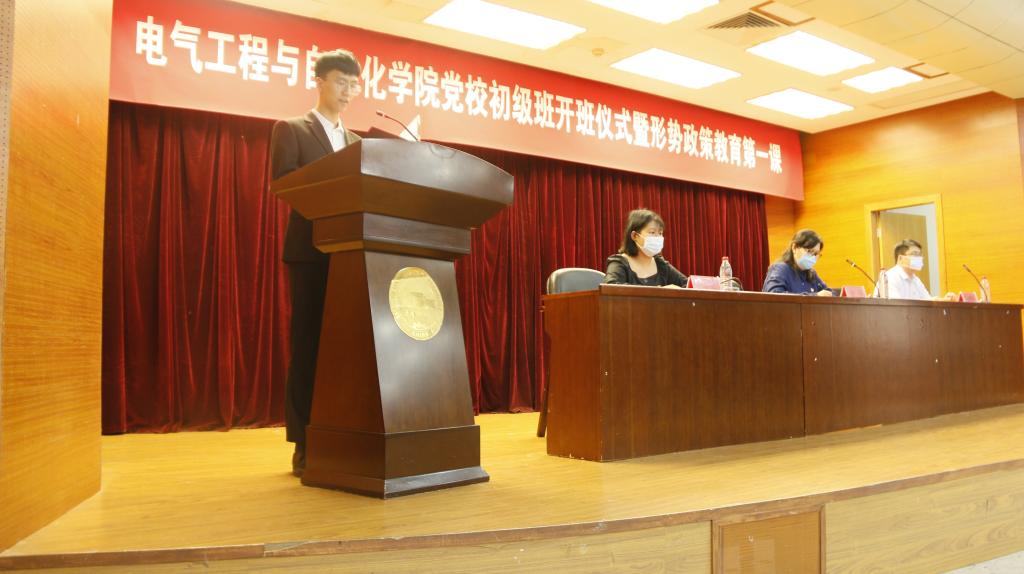 在慷慨激昂的国歌声中,开班仪式拉开了帷幕。公司团委负责人尹余萌老师宣读了党校初级班的开班决定。测控与人工智能本科生党支部冯智航同学代表全体学员表示,定会珍惜来之不易的党课培训机会,努力完善自己,将自身塑造成理想信念坚定、思想品德优良、文化知识丰富、社会本领过硬的拔尖创新人才,增强做中国人的志气、骨气、底气,不负时代、不负韶华、不负党和人民的殷切期望。