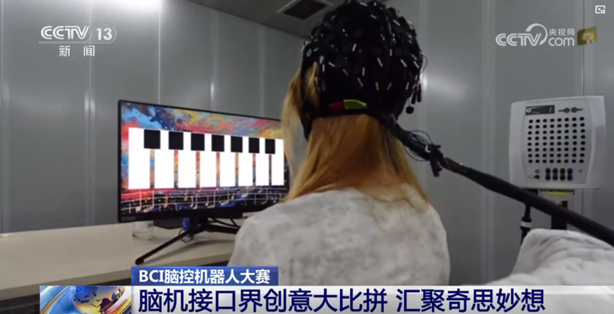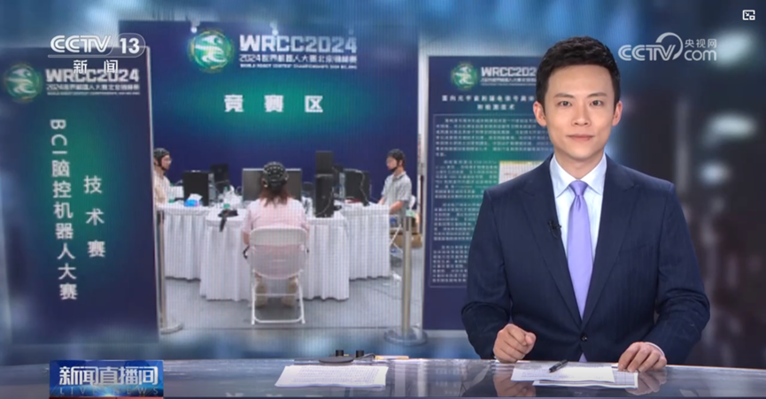 世界机器人大赛BCI脑控机器人比赛在CCTV13新闻播报画面