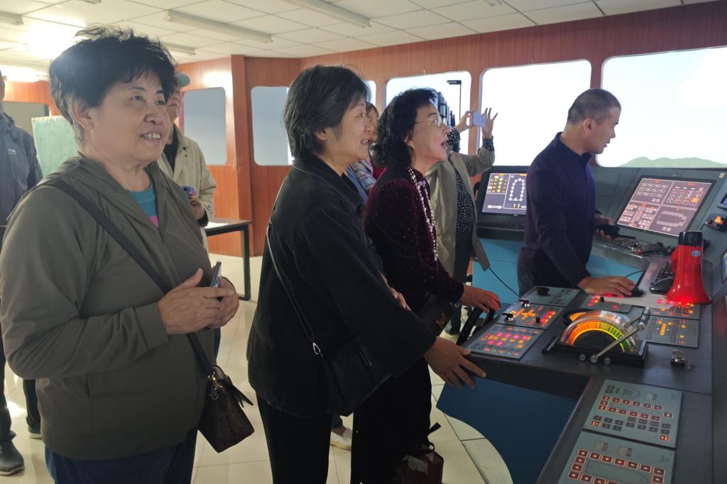 老师们首先来到海天一体实验室,在综合仿真实验教学中心的高度沉浸感的虚拟航海环境中,操控海天一体船舶操纵模拟器,深入了解设备运行的原理,感受先进科技的魅力。