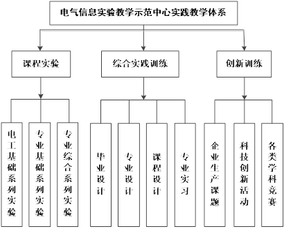中心结合电气信息类专业的本科生专业的培养方案,完成了相关专业课程实验、课程设计和实习等实践教学环节的层次界定。根据员工不同阶段学习的需求,建立了课程实验、综合实践训练和创新训练三个由低到高的实验教学层次,从而构建了功能完备的实践教学体系,如图2所示。